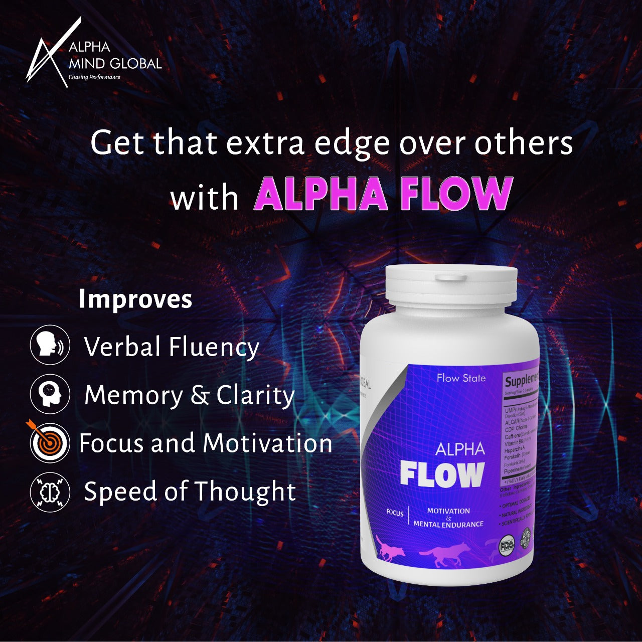 The active natural ingredients of Alpha Flow work on a multitude of angles in the brain to improve verbal fluency, name recall, precise data crunching, focus, keeping the brain tireless, improving social behavior, etc. It is also neuroprotective in nature, supports neurogenesis & enables better learning skills.