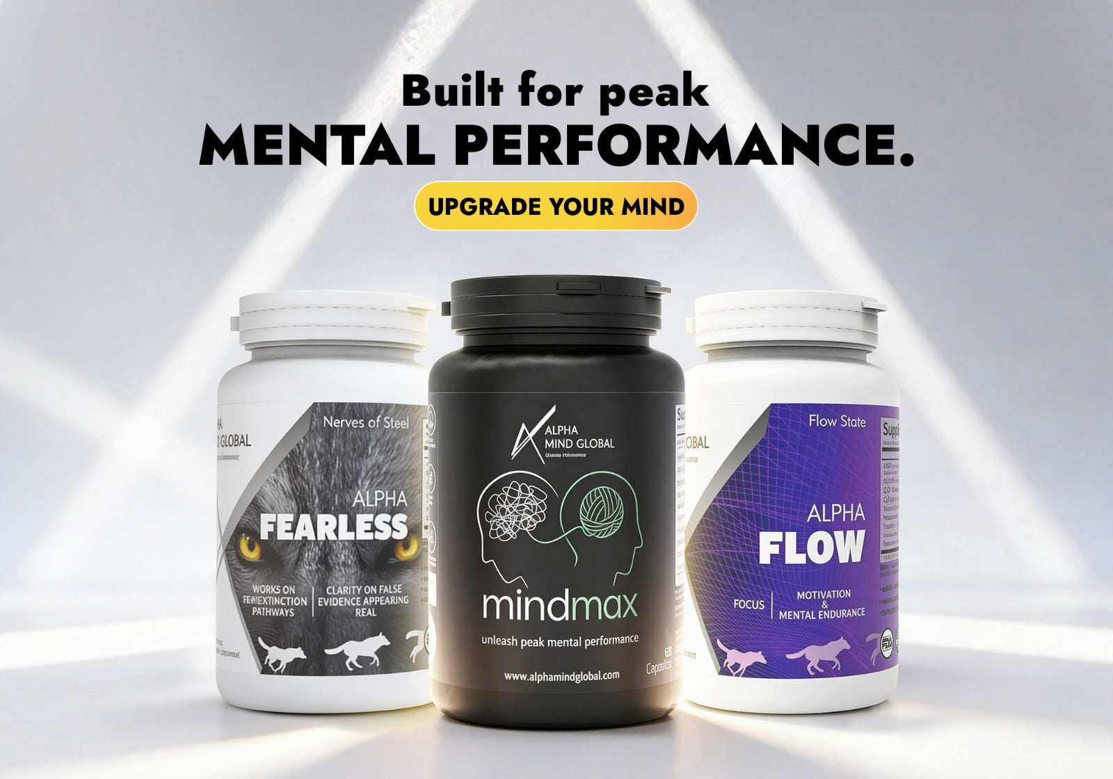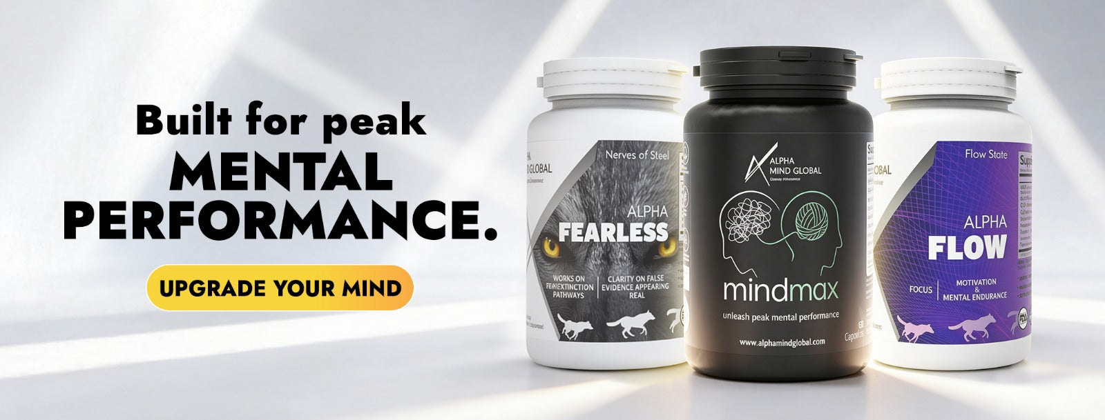 Unleash peak cognitive performance with MindMax, Alpha Flow, Alpha Pro Gamer, and Alpha Fearless. Stay focused, alert, and mentally unstoppable.